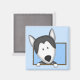 This really cute Siberian Husky magnet has the cartoon sled dog poking his head out of a light blue polka dotted frame, his paws dangling over the edge. So adorable! Makes a great dog lover gift.