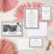 This formal design features a silver and white border framing your text which is displayed in the traditional format. Front centre image displays "IHS", which is the traditional Catholic symbol for Christ, and is displayed with a silver cross and palm branch. Your chosen Bible verse is displayed below image. Reverse side features reception and lodging information. Designed to coordinate with the "Framed Catholic Bible-Verse" wedding suite collection.
