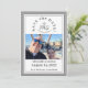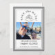This design features a silver and white border framing entire design. Top centre features a cross with the letters "IHS" over it, the image of palm leaves just below. The words, "Save the Date!" are displayed as an arch encircling image. Your photo is displayed as main image. Names of bride and groom appear just below. City and state are displayed at very bottom. Reverse side features the Bible-verse of your choice. All text is in a lovely silver font, matching border.