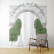 Design features the look of an aisle with bushes on either side leading up to an arch. Couple's names are displayed as arch in silver lettering. Designed to coordinate with the Framed Catholic Bible Verse Wedding Suite.