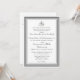Formal design features a silver and white border framing your text which is displayed in the traditional format. Top image displays "IHS", which is the traditional Catholic symbol for Christ and is displayed with a silver cross. A palm branch separates image from text below.