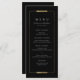 Elegant modern faux gold frame with stylish script and serif font content on black background, simple and sophisticated. Great menu card for modern classic wedding, luxe vintage wedding and simple formal wedding.