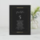 Elegant modern faux gold frame with stylish script and serif font content on black background, simple and sophisticated. Great wedding seating chart cards for modern classic wedding, luxe vintage wedding and simple formal wedding.