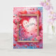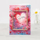 Pink and red hearts and flowers are all around a wooden frame on this sweet and romantic Valentine Card.