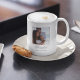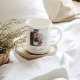 A framed photo layout with soft watercolor border, romantic text, and heartfelt message. White base ceramic mug with script word “Cherished” beneath the image and love note on the back. Neutral tones, clean layout, and refined minimalist design.
