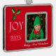 Framed photo ornament shown in silvertone metal with a red background and a sample photo,customise this ornament and just change the photo to your own great photo and change the text if you wish.