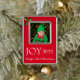 Framed photo ornament shown in silvertone metal with a red background and a sample photo,customise this ornament and just change the photo to your own great photo and change the text if you wish.