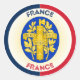Very pleasant design showing the coat of arms of France within a circle shape made of the national colours.