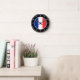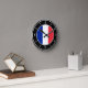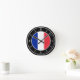 France Flag Elegant Round Clock with the France flag positioned in the middle and lovely white clock numbers on the clock edge. Delightful black background with the white oval elements finalize the design putting emphasis on the elegance. Beautiful combination of black and white with the skillful integration of the national flag colors make this clock the perfect gift and the great show piece on the wall. © CountriesOfTheWorld