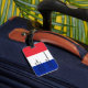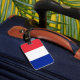 I was happy with the acrylic tag but it came with a thin leather strap to attach the tag to luggage (like a cat collar). I replaced the strap with a metal ring off of a key ring as the leather strap would come undone or break easily as luggage is sometimes handled without much care by airlines. Printing is great. Colours and positioning of the design I put on the tag were perfect. Very pleased.