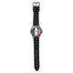 Has heft and feel of expensive stainless steel quartz wrist watches. Solid construction and good looks. Although it had a really top quality rubber strap, I substituted a stainless steel "Shark" style mesh strap, which I think is the most comfortable strap available. Perfect. True colors of original image. Clear, crisp image precisely aligned and spaced.