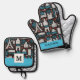 France | Symbols Pattern Oven Mitt & Pot Holder Set