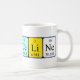 Franceline spelled out as F Ra N Ce Li Ne (Fluorine Radium Nitrogen Cerium Lithium Neon) on a mug for the scientist in you.