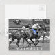 Horse racing's greatest moment when two amazing thoroughbreds with their rippling muscles battle to the finish line in a photo finish noses apart at historic Belmont Park. In this race, VALHALLA on the outside got the win in the blue SADDLECLOTH in this black and whit photo.