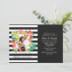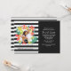A dramatic photo invitation with colourful, tropical flowers and foliage against a black and white stripe background. <br/><br/>The card is easy to customise with your wording, font, font colour, paper shape options and choice of six paper types.<br/><br/>Not exactly what you're looking for? All our products can be custom designed to meet your needs at no extra charge.<br/><br/>Simply contact us at askpixieprints@aol.com.<br/><br/>Coordinating products available: Just ask us!