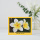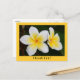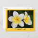 Customise this postcard: change the colour border, message, or add your own text! Photography by Minerva Bloom. Two frangipani - plumeria blossoms with dew.