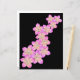 Features hand-drawn pink and yellow frangipani flowers on a black background.