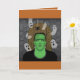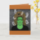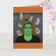 This is an image of Frankenstein emotionally unfazed by Ghosts within the castle. The back shows one of the ghost's wishing you Happy Halloween.