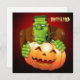 Frankenstein Monster Cartoon with Pumpkin Invitation