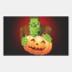 Frankenstein Monster Cartoon with Pumpkin Rectangular Sticker