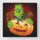Frankenstein Monster Cartoon with Pumpkin Square Wall Clock