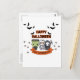 Greet your family and friends with this whimsical, spooky Halloween Greeting Postcard! The design captures the eerie magic of the season. Our design includes illustrations of a cute little scare squad featuring a Frankenstein, a Mummy, a Grim Reaper with his sickle, and cute black cat wearing a pumpkin hat. A group of scary bats are flying overhead the "Happy Halloween" greeting in a fun orange font and spooky spiders are busy crawling throughout the card. It’s the perfect blend of playful and spine-chilling!