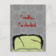 Give someone a smile when you send this funny postcard with my original digitally created Halloween design and a little pun. The top third of Frankenstein's monster's yellowish-green head with all it's slashes and stitches peeks up from the bottom edge of the card. Behind the monster is a grey cobblestone wall. Above his head in a red, spooky font it reads "Frankly...I'm shocked." This design is fully customisable for you to make it your own.