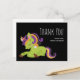 Thank you postcard with an image of a Frankenstein unicorn. Purple and green colours. Spooky cute.