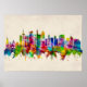 Elegant Watercolor Skyline of Frankfurt, a central German city on the river Main, a major financial hub that's home to the European Central Bank