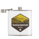 The flask itself is fine. It’s a cheap flask, obviously bought in bulk, however am prepared to overlook that. Given that it is a personalized item, I would have liked to have seen gift boxing instead of the generic packaging. Terrible printing, and/or quality. It’s a cheap, tacky vinyl. It is not cut straight and is also applied in a way that it is overhanging the bottom, causing the glue to catch on items and it will eventually roll and tear, damaging the wrap.
