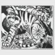 Woodcut print from 1912 showing abstract black and white tigers in a jungle setting.