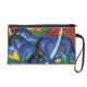 Franz Marc Blue Horses wristlet. Oil on canvas from 1911. Franz Marc painted some of the most exquisite animal paintings of the twentieth century. His blue horses are some of the most popular paintings in his catalogue. Blue Horses is a charming horse painting featuring blue horses standing amongst hills of red, blue and yellow. A pretty gift for fans of Franz Marc, blue horses, horse paintings, and expressionism.