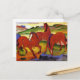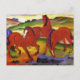 Franz Marc Grazing Horses postcard. Oil on canvas from 1911. Franz Marc was a great painter of horses throughout his career. Grazing Horses is one of his prettiest works. Unlike his other abstract horse paintings, Grazing Horses features three natural brown horses standing amongst hills as the setting sun turns the landscape a range of beautiful colours. A pretty gift for fans of Franz Marc, Horse paintings, Expressionism, and animal art.