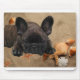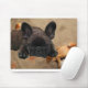 Französische Bulldoggen Welpe am Strand. Sonne, Muscheln und das Meer sorgen für gute Laune.