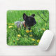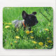 Niedliche französische Bulldoggen auf einer wunderschönen Wiese mit vielen Butterblumen.