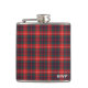 Monogrammed flask with the modern tartan for Clan Fraser of Lovat and its septs, including Simson. Bright red and navy blue Scottish plaid pattern from 1893, with forest green and white accents.