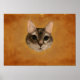 A digital portrait painting of a tabby cat over a painted yellow-orange background.