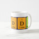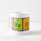 Freddy spelled out as F Re D D Y (Fluorine Rhenium Deuterium Deuterium Yttrium) on a mug for the scientist in you.