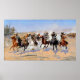 Cowboys escape an Indian attack as painted by Frederic Remington.
