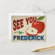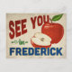 A charming Frederick Maryland vintage travel postcard featuring a lovely red apple, along with fun retro style text that says, "See you in Frederick"