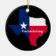 Two sided ornament featuring the Texas state outline on one and the Fredericksburg Museum on the other.