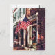 Patriotic display of Americam flags on Caroline Street in Fredericksburg Va, representing the present day flag and "Grand Union Flag" which has the British Union Flag of the time in the corner and is considered to be the first national flag.