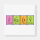 Fredy spelled out as F Re D Y (Fluorine Rhenium Deuterium Yttrium) on a magnet for the scientist in you.