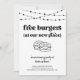 Free Burgers (at our new place!). Enjoy a fun housewarming invitation that puts the spotlight on... burger! Artwork is hand drawn.