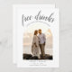 Modern and elegant with grey script arch photo Free Drinks (and we're getting married) design save the dates for your beach wedding (or any wedding celebration!). Customise the front with photo and wedding details and the backside with your text.