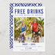 Funny wedding save the date cards for the engaged couple who is getting married on the beach in Mexico. This funny "Free drinks on the beach in Mexico" photo design will set the tone for your super fun destination wedding. Customise with your photo, names, wedding date and location. The backside of this Mexico destination save the date card is in a blue and white pattern design.