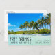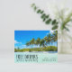 Save the date wedding postcards for your tropical beach destination wedding. Turquoise waters, white sand and palm tree "Free drinks (and a wedding) design postcards - add your wedding details using the template. These beach save the dates are a budget-friendly way to share your wedding date and get your friends and family excited about your beach wedding.