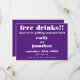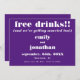 A simplistic fun and bold typographical design to invite your guests to save your wedding date which is fully customisable. The centereed text is in white, with the header, Free Drinks followed by And We’re Getting Married Too, your names, wedding date and location. A purple background background is on both sides which you can change to a different colour if you wish via the Customise Further option.