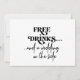 Simple black and white trendy bold typography wedding invitation with a funny "free drinks and a wedding on the side" script.