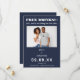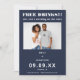 Casual fun style in cool navy and white to let your guests know to save the date for your wedding. Fully customisable. Bold script at the top Free Drinks!!! with tagline (oh and a wedding on the side) beneath, and add a favourite photo of you both! Simply replace the sample photo in the template placeholder with your own and personalise the text to your details.